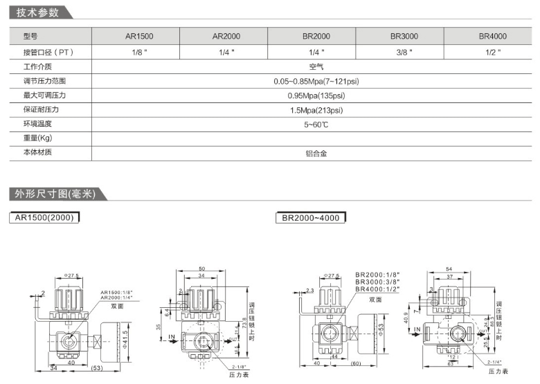 亚德客型AR、BR系列调压阀