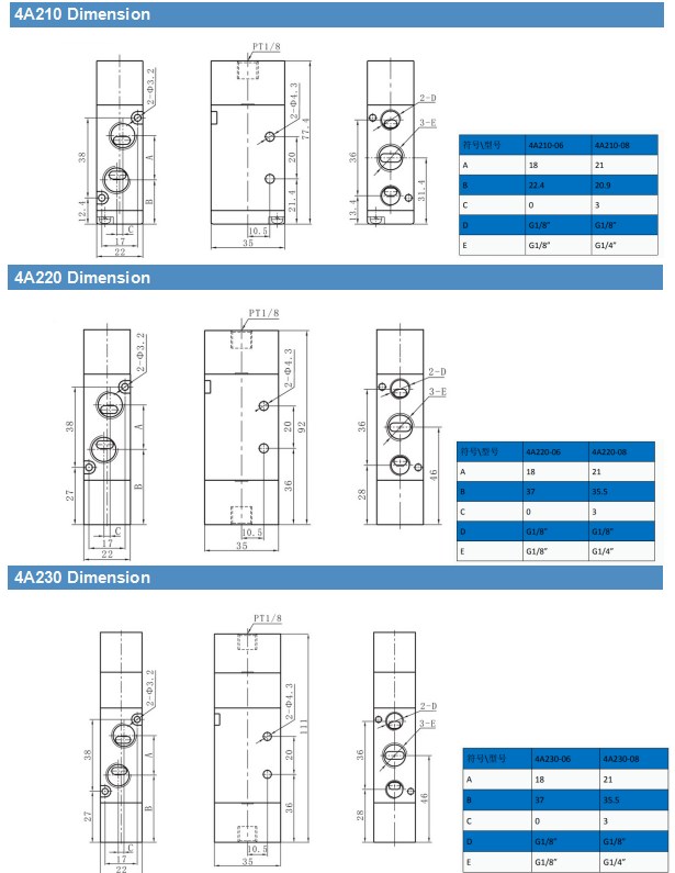 . 4A210, 4A220, 4A230C, 4A230E, 4A230P series air operated valve.* Exterior control, 5 port 2 position or 5 port 3 position DC12V/24V Solenoid Air Control Valve Pneumatic Valve
