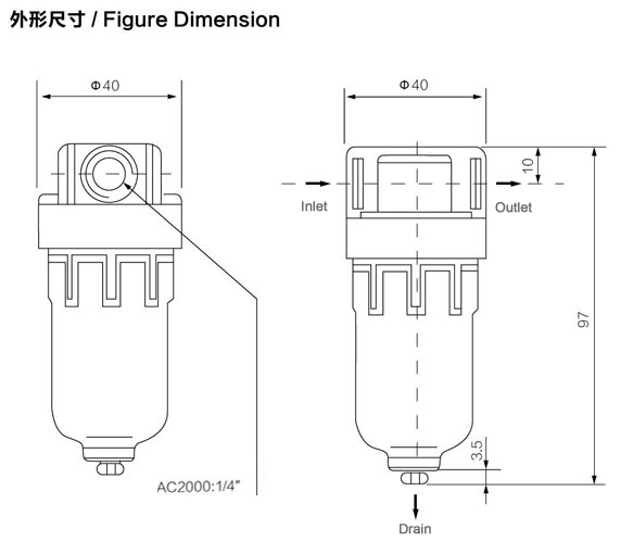 .Airtac type AF2000 BF2000 BF3000 BF4000 series air filter fit for compressor