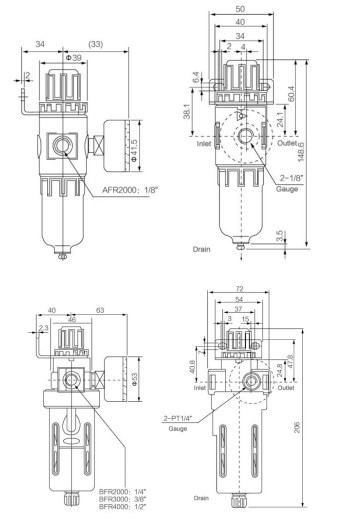 .Airtac type 1/4 inch AFR2000 BFR2000 BFR3000 BFR4000 series Air source treatment Pneumatic Regulator Filter and Pressure Gauge meets temperature Range: 5-60 Degree