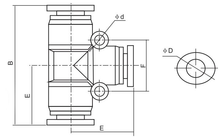 PE系列三通T型气动气管快插接头PE-4,PE-6,PE-8,PE-10,PE-12,PE-14,PE-16