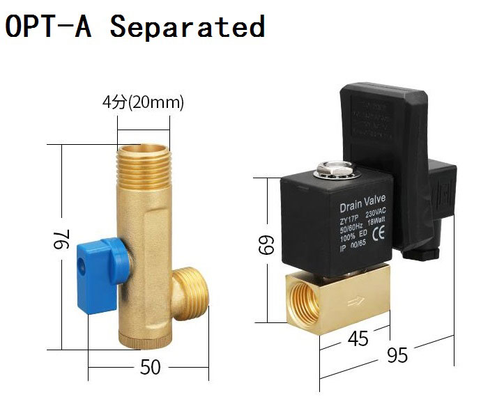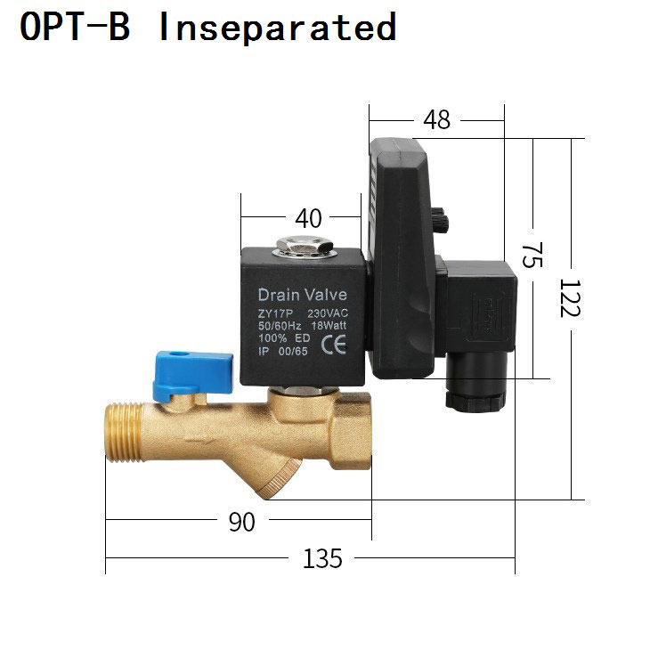 OPT type auto drain solenoid valve match analogous circuit solid state electronic timer with the solenoid valve to realize discharging the condensed water of compressed pneuamtic system at fixed time automatically.